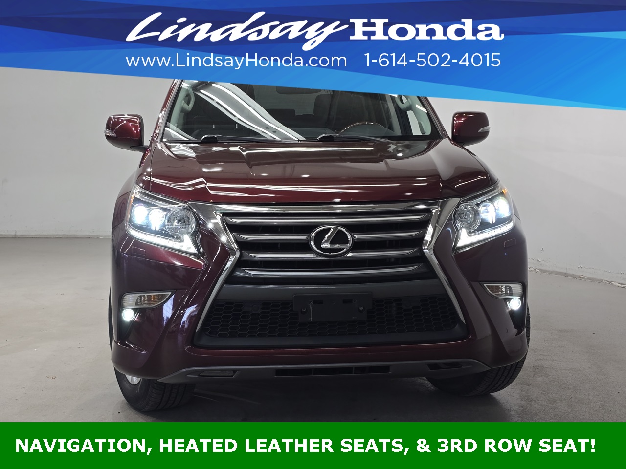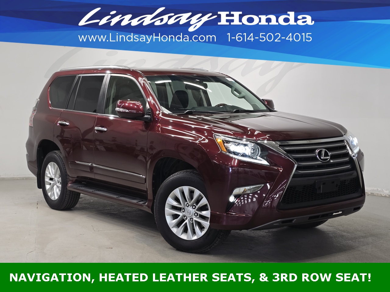 Claret Mica 2016 Lexus GX 460 4WD 6-Speed Automatic with Sequential Shift ECT 4.6L V8 DOHC Dual VVT-i 32V **BLUETOOTH**, **POWER PACKAGE**, **BACKUP CAMERA**, **NAVIGATION SYSTEM**, **LEATHER SEATS**, **HEATED SEATS**, **THIRD ROW SEATING**, **POWER SUNROOF**, **POWER TAILGATE**, 3-Zone Automatic Climate Control, Back-Up Camera, Comfort Package, Heated & Ventilated Front Seats, Heated 2nd Row Outboard Seats, Intuitive Parking Assist, LED Fog Lamps, Lexus Enform Destinations, Navigation Package, Perforated Leather Seat Trim, Premium Package, Rain Sensing Intermittent Wipers, Wheels: 18" x 7.5" Split 6-Spoke Aluminum Alloy.
