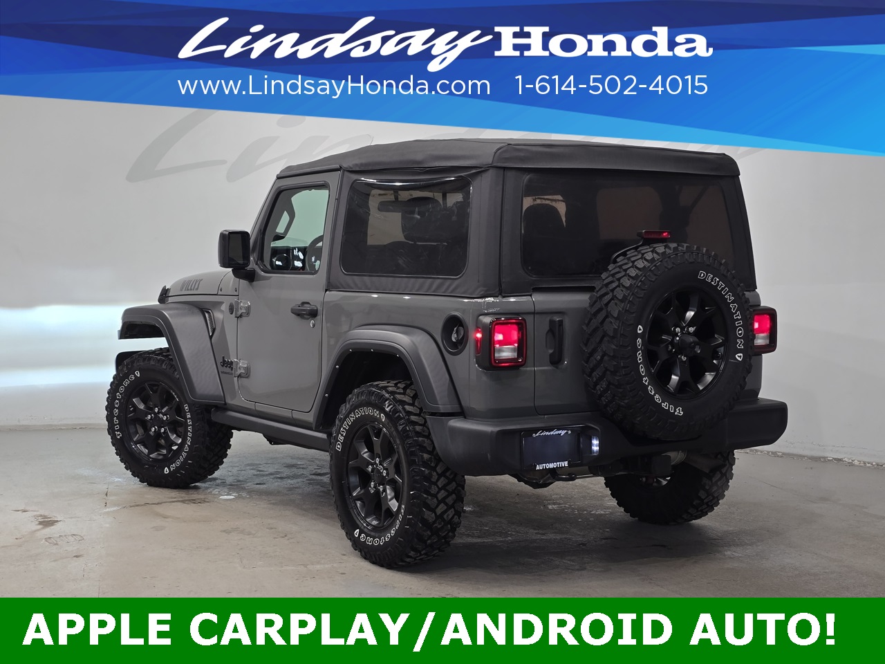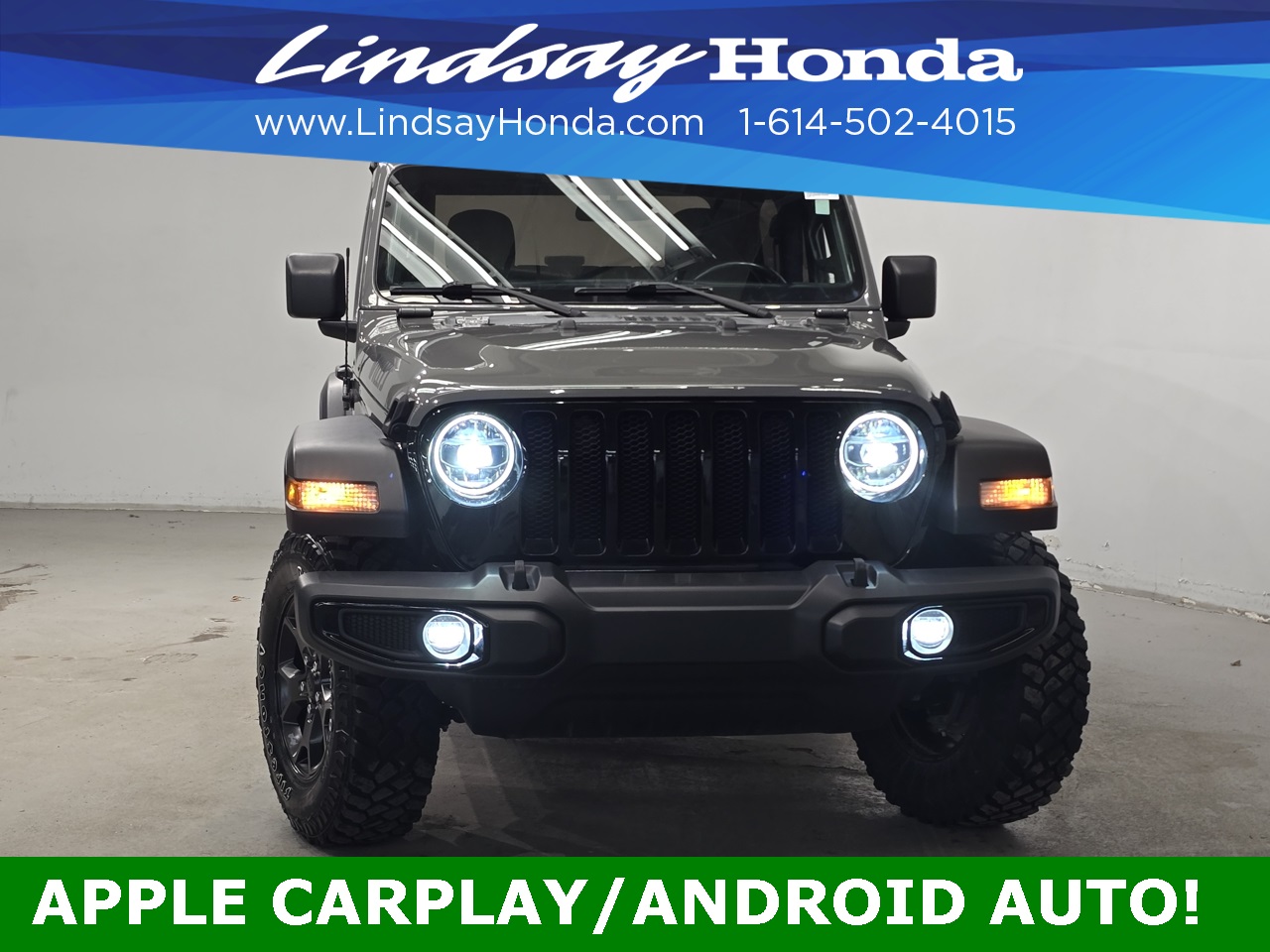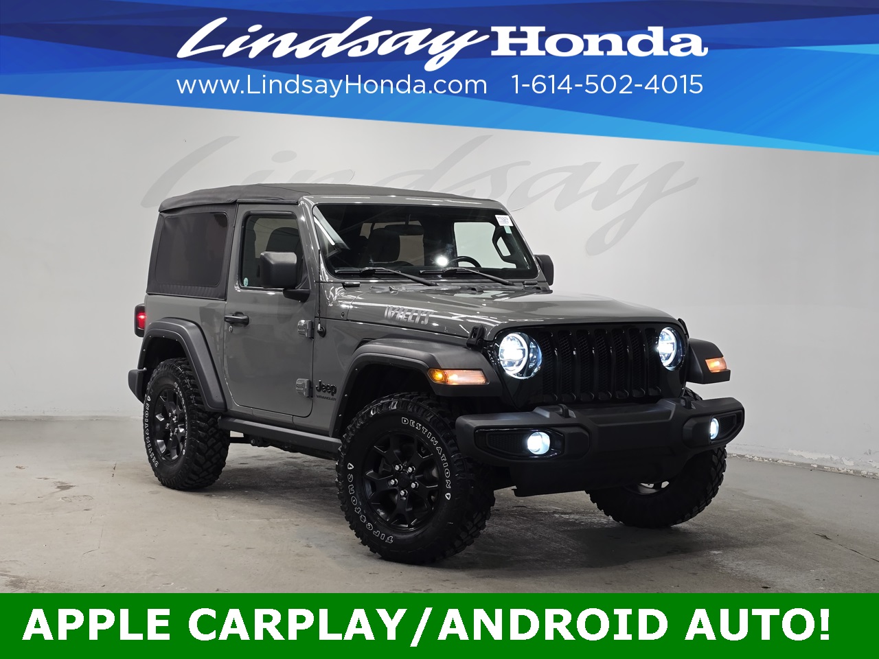 Sting-Gray Clearcoat 2021 Jeep Wrangler Willys 4WD 8-Speed Automatic 2.0L I4 DOHC **BLUETOOTH**, **APPLE CARPLAY**, **ANDROID AUTO**, **TOW PACKAGE**, **POWER PACKAGE**, **BACKUP CAMERA**, 240 Amp Alternator, 4-Wheel Drive Swing Gate Decal, 7 & 4 Pin Wiring Harness, 7.0" Touchscreen Display, 700 Amp Maintenance Free Battery, 97 MPH Vehicle Max Speed Calibration, Air Conditioning, Air Conditioning w/Auto Temperature Control, Air Filtering, Anti-Spin Differential Rear Axle, Apple CarPlay, Automatic Headlamps, Auxiliary Switches, Black Grille, Black Trail Rated Badge, Class II Receiver Hitch, Cluster 7.0" TFT Color Display, Deep Tint Sunscreen Windows, For More Info Call 800-643-2112, Front 1-Touch Down Power Windows, Front LED Fog Lamps, Google Android Auto, GPS Antenna Input, Integrated Center Stack Radio, Leather Wrapped Steering Wheel, LED Headlamp & Fog Lamp Group, LED Premium Reflector Headlamps, Matte Black Jeep Badge, Mold In Color Bumper w/Gloss Black, MOPAR All-Weather Floor Mats, Power Heated Mirrors, Quick Order Package 22W Willys, R1234YF A/C Refrigerant, Radio: Uconnect 4 w/7" Display, Remote Keyless Entry, Security Alarm, SiriusXM Radio Service, SiriusXM Satellite Radio, Speed Sensitive Power Locks, Sun Visors w/Illuminated Vanity Mirrors, Technology Group, Trailer Tow & HD Electrical Group, USB Host Flip, Wheels: 17" x 7.5" Moab Black Aluminum, Willys, Willys Hood Decal, Wrangler Decal.