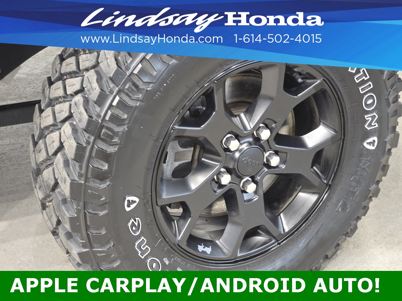 - 17 x 7.5-inch front and rear black aluminum wheels