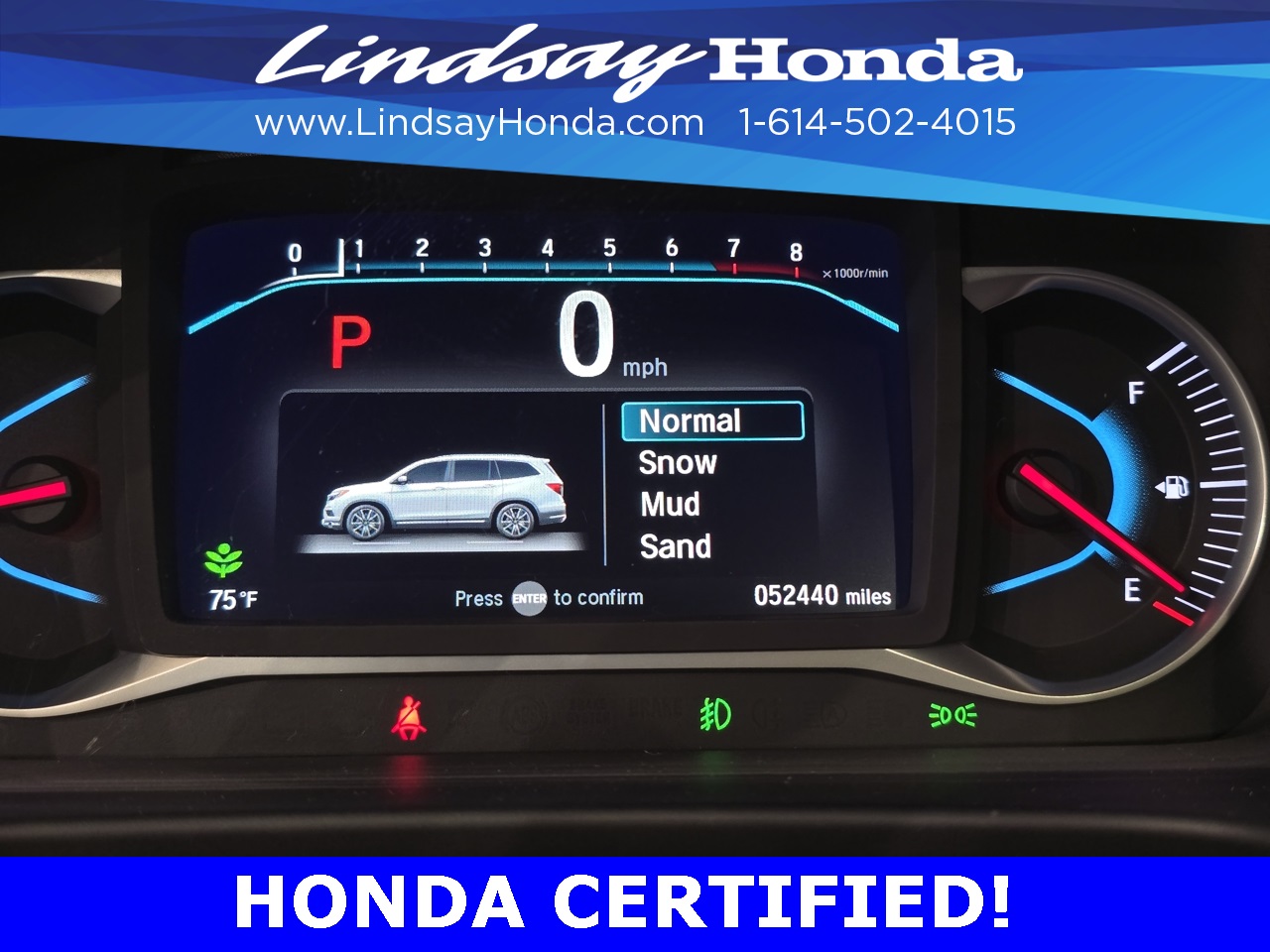 Certification Program Details: HondaTrue Certified Details: * 182 Point Inspection * Powertrain Coverage: 7 Years(From the original in-service date)/100,000 miles (whichever occurs first). * Non-Powertrain Coverage: Additional 2 years beginning at the expiration of the New Vehicle Limited Warranty, or from the date of sale of the vehicle if the New Vehicle Limited Warranty has expired at the time of sale, or up to 100,000 total odometer miles, whichever comes first. *Up to two complimentary oil changes within the first year of ownership. * Vehicle History Report * Warranty Deductible: $0 * Roadside Assistance * Transferable Warranty *SiriusXM 90-Day Trial *Honda Care Motor Club Partner for 1 year/12,000 miles Why buy from Lindsay?