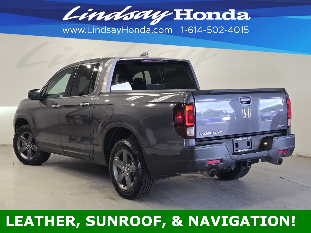 Modern Steel Metallic 2022 Honda Ridgeline RTL-E AWD 9-Speed Automatic 3.5L V6 SOHC i-VTEC 24V **BLUETOOTH**, **APPLE CARPLAY**, **ANDROID AUTO**, **TOW PACKAGE**, **POWER PACKAGE**, **REMOTE START**, **BACKUP CAMERA**, **NAVIGATION SYSTEM**, **LEATHER SEATS**, **HEATED SEATS**, **ONE OWNER**, **POWER SUNROOF**.
