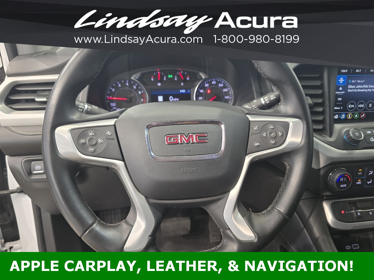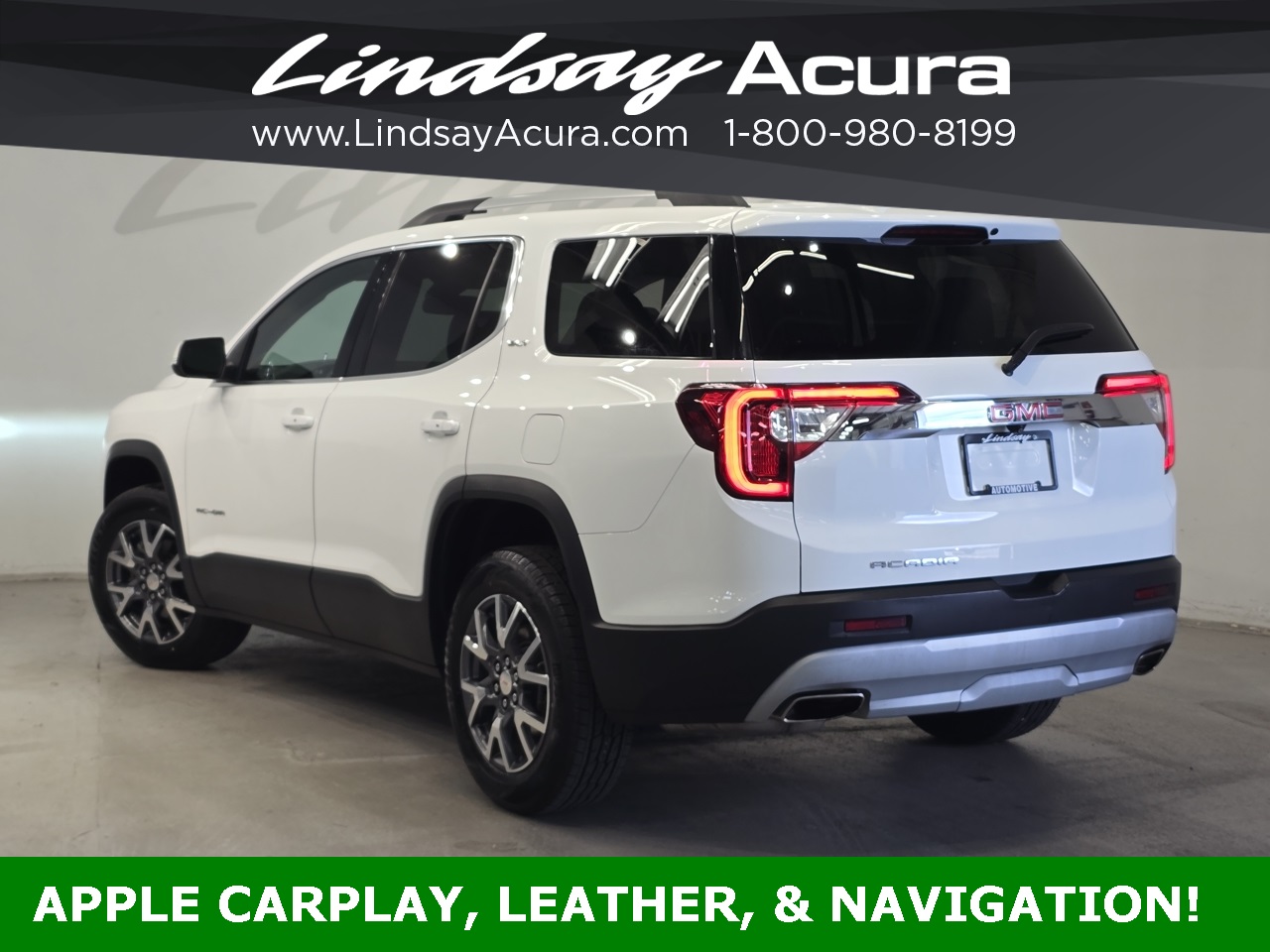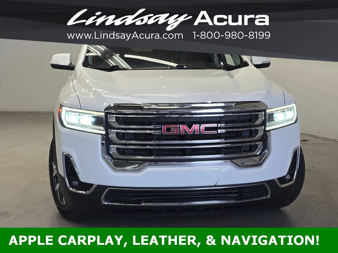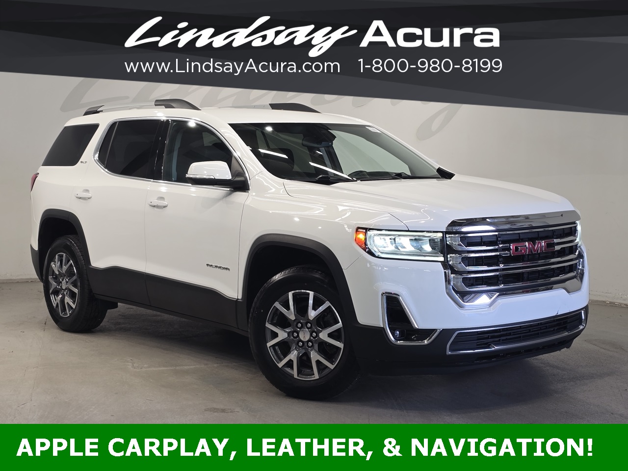 FWD Summit White 2023 GMC Acadia SLT 9-Speed Automatic 2.0L Turbocharged **ANDROID AUTO**, **APPLE CARPLAY**, **BLUETOOTH**, **BACKUP CAMERA**, **LEATHER SEATS**, **NAVIGATION SYSTEM**, **POWER PACKAGE**, **ONE OWNER**, **CLEAN AUTO CHECK**, **THIRD ROW SEATING**, **HEATED SEATS**, FWD, Jet Black w/Perforated Leather-Appointed Seat Trim, Preferred Equipment Group 4SA.