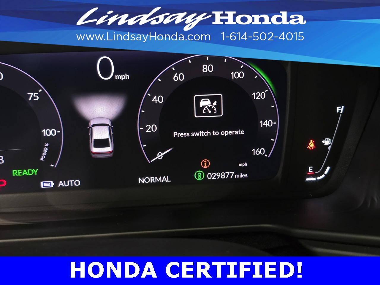 Certification Program Details: HondaTrue Certified Details: * 182 Point Inspection * Powertrain Coverage: 7 Years(From the original in-service date)/100,000 miles (whichever occurs first). * Non-Powertrain Coverage: Additional 2 years beginning at the expiration of the New Vehicle Limited Warranty, or from the date of sale of the vehicle if the New Vehicle Limited Warranty has expired at the time of sale, or up to 100,000 total odometer miles, whichever comes first. *Up to two complimentary oil changes within the first year of ownership. * Vehicle History Report * Warranty Deductible: $0 * Roadside Assistance * Transferable Warranty *SiriusXM 90-Day Trial *Honda Care Motor Club Partner for 1 year/12,000 miles Why buy from Lindsay?