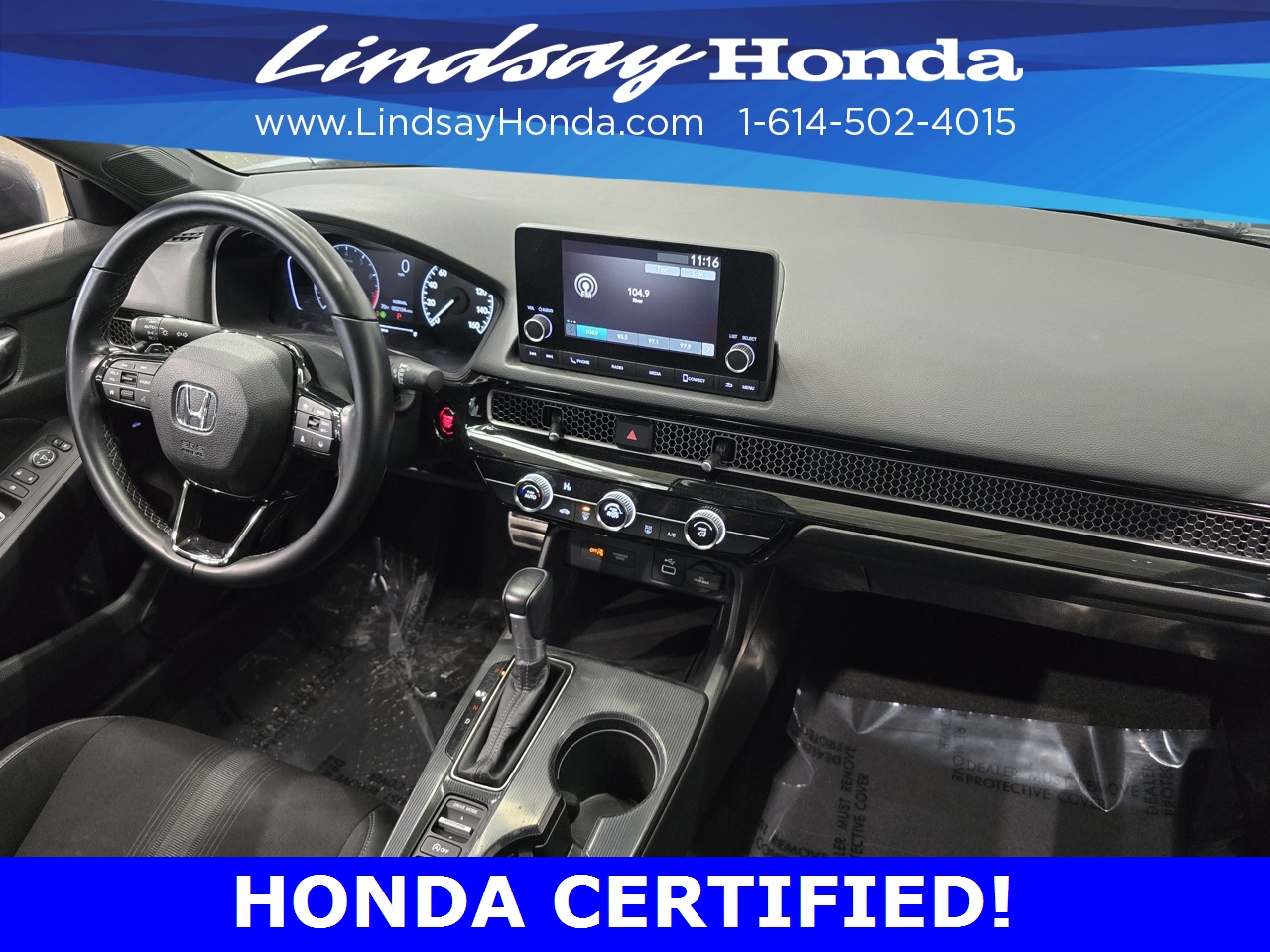 Certification Program Details: HondaTrue Certified Details: * 182 Point Inspection * Powertrain Coverage: 7 Years(From the original in-service date)/100,000 miles (whichever occurs first). * Non-Powertrain Coverage: Additional 2 years beginning at the expiration of the New Vehicle Limited Warranty, or from the date of sale of the vehicle if the New Vehicle Limited Warranty has expired at the time of sale, or up to 100,000 total odometer miles, whichever comes first. *Up to two complimentary oil changes within the first year of ownership. * Vehicle History Report * Warranty Deductible: $0 * Roadside Assistance * Transferable Warranty *SiriusXM 90-Day Trial *Honda Care Motor Club Partner for 1 year/12,000 miles Why buy from Lindsay?