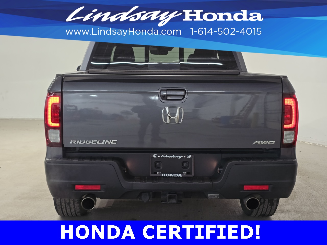 Certified. Modern Steel Metallic 2023 Honda Ridgeline RTL AWD 9-Speed Automatic 3.5L V6 SOHC i-VTEC 24V **HONDA CERTIFIED**, **BLUETOOTH**, **APPLE CARPLAY**, **ANDROID AUTO**, **TOW PACKAGE**, **POWER PACKAGE**, **REMOTE START**, **BACKUP CAMERA**, **LEATHER SEATS**, **HEATED SEATS**, **POWER SUNROOF**.