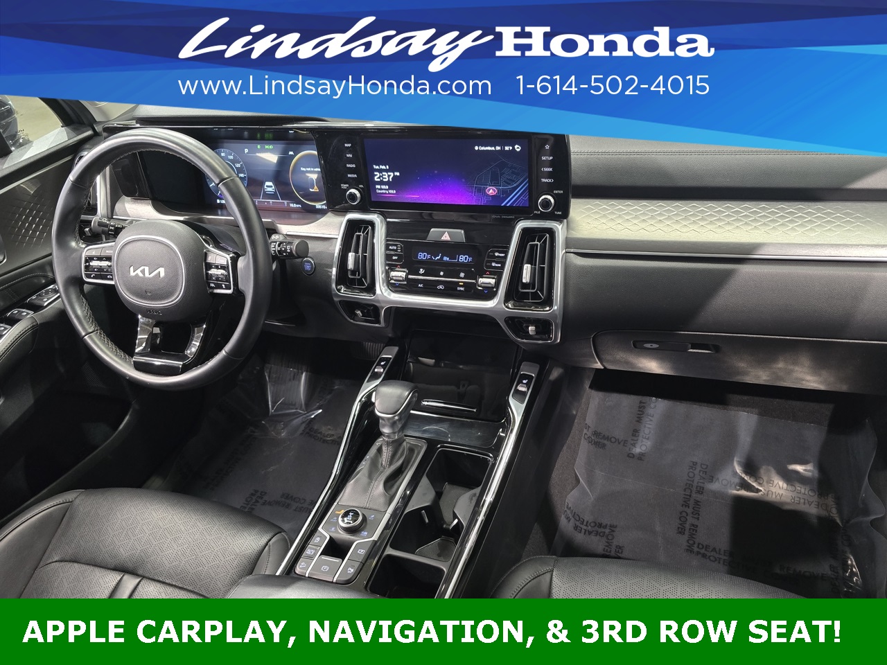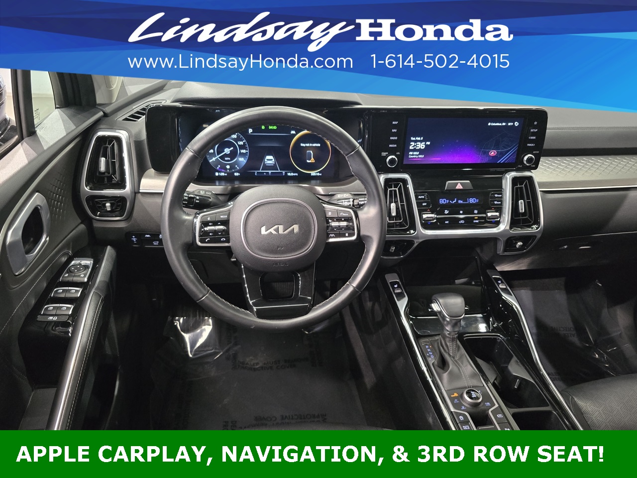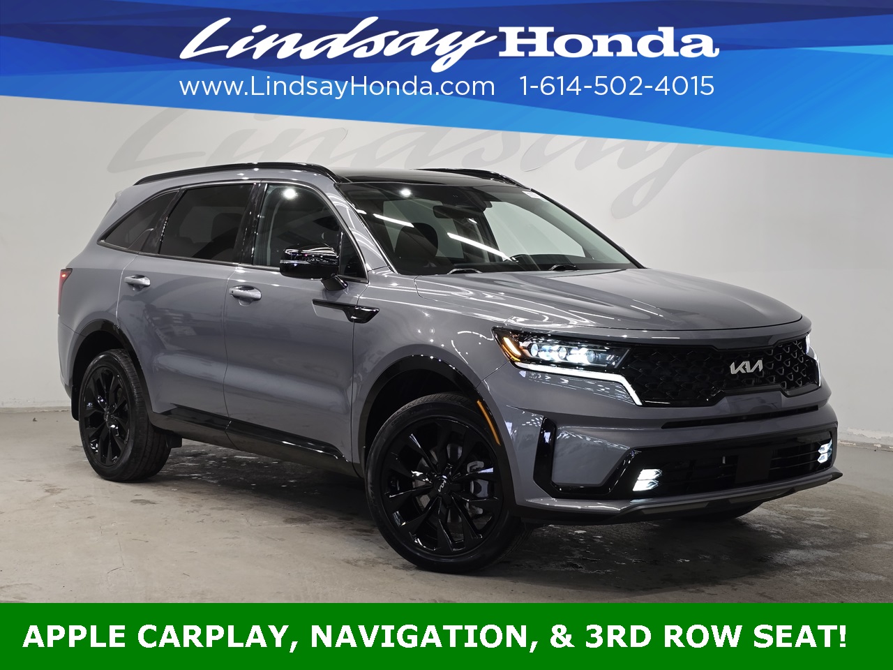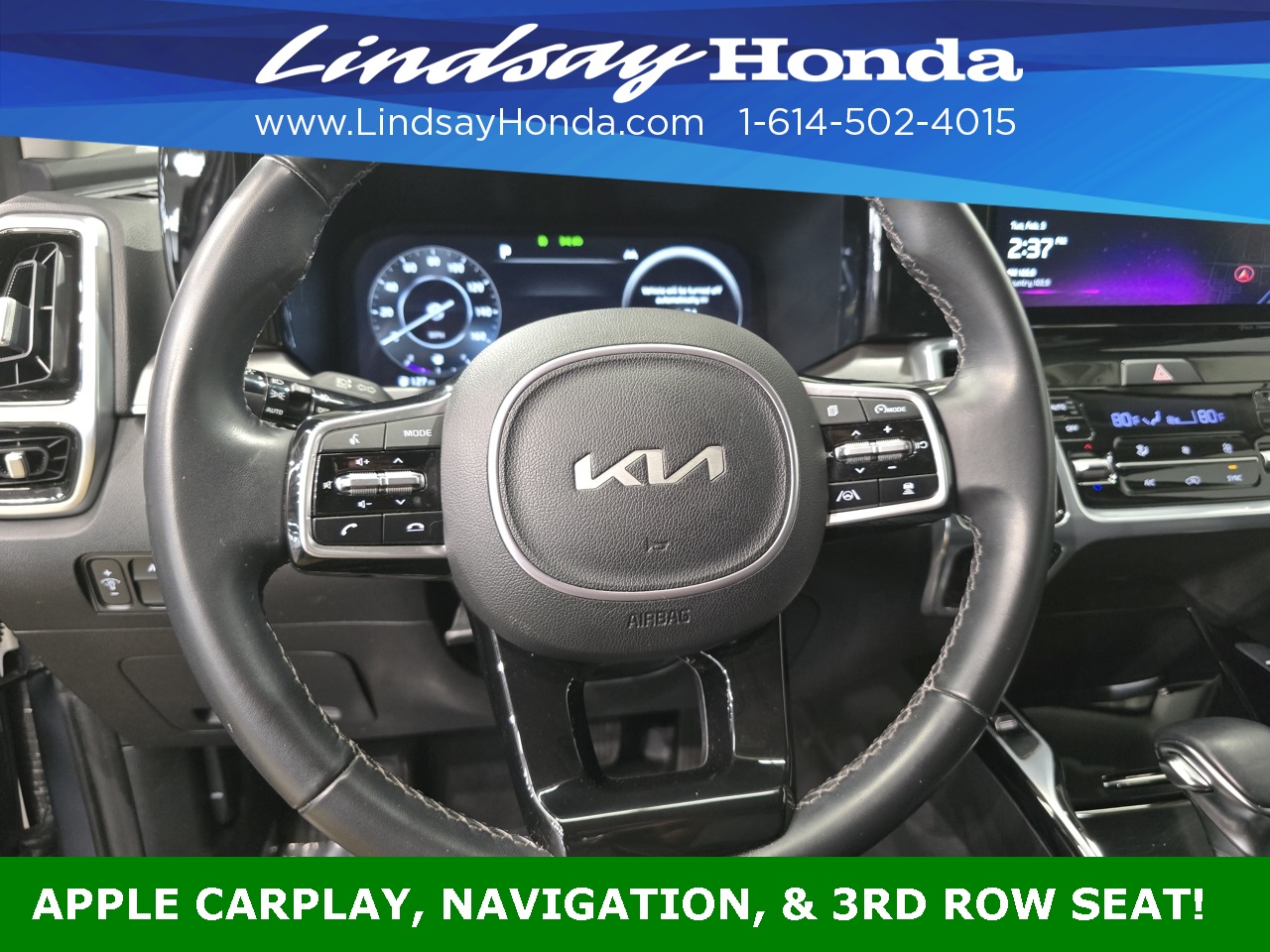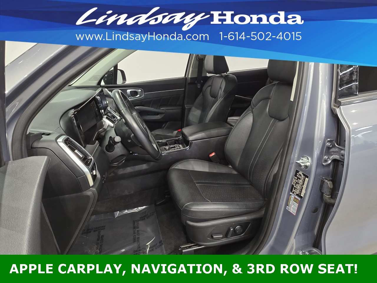 Everlasting Silver 2023 Kia Sorento SX AWD 8-Speed DCT 2.5L I4 DGI Turbocharged DOHC 16V LEV3-ULEV70 281hp **BLUETOOTH**, **APPLE CARPLAY**, **ANDROID AUTO**, **ADAPTIVE CRUISE CONTROL**, **POWER PACKAGE**, **REMOTE START**, **BACKUP CAMERA**, **NAVIGATION SYSTEM**, **LEATHER SEATS**, **HEATED SEATS**, **CLEAN AUTO CHECK**, **ONE OWNER**, **THIRD ROW SEATING**, **POWER SUNROOF**, **POWER TAILGATE**.