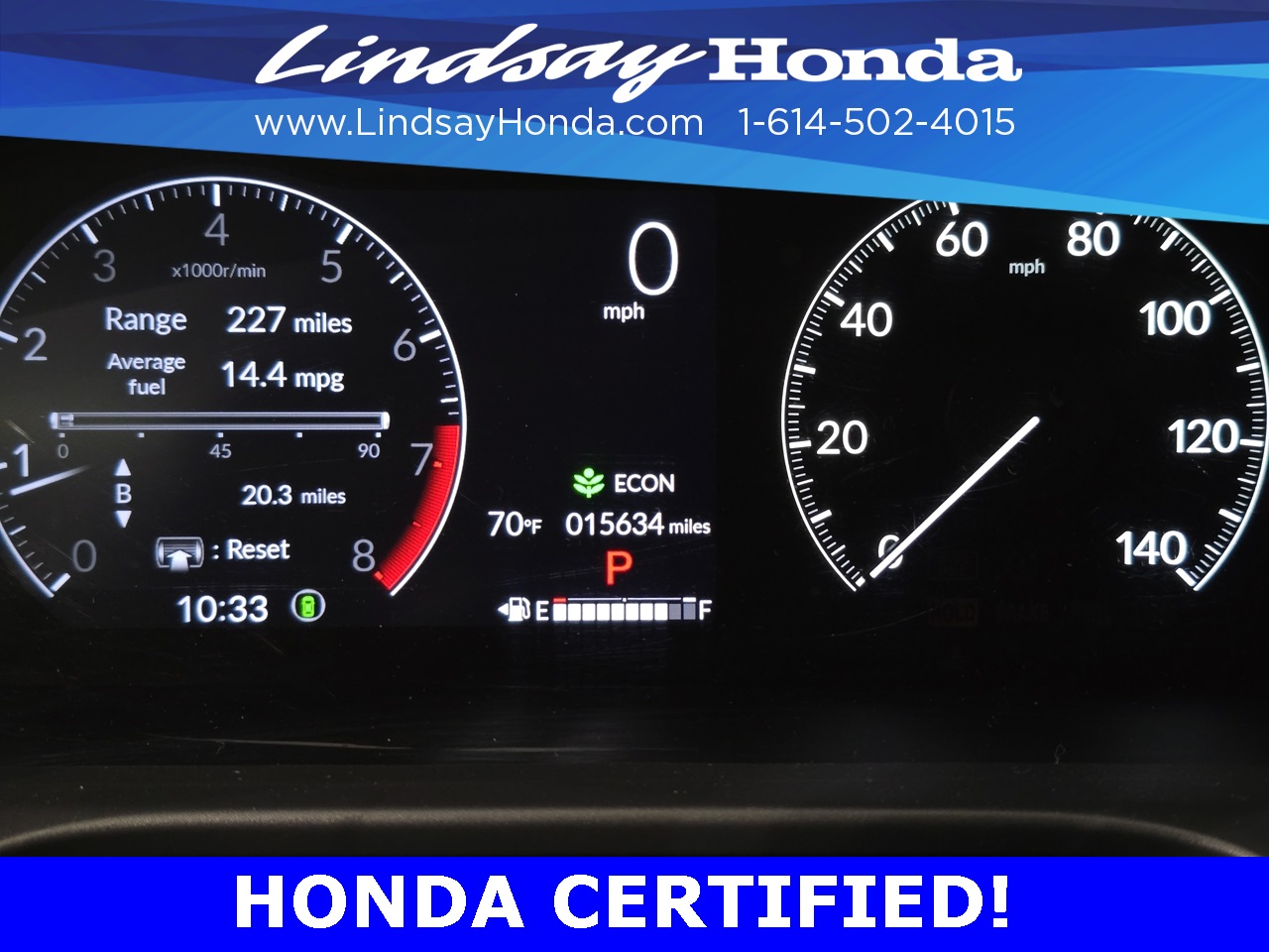 Certification Program Details: HondaTrue Certified Details: * 182 Point Inspection * Powertrain Coverage: 7 Years(From the original in-service date)/100,000 miles (whichever occurs first). * Non-Powertrain Coverage: Additional 2 years beginning at the expiration of the New Vehicle Limited Warranty, or from the date of sale of the vehicle if the New Vehicle Limited Warranty has expired at the time of sale, or up to 100,000 total odometer miles, whichever comes first. *Up to two complimentary oil changes within the first year of ownership. * Vehicle History Report * Warranty Deductible: $0 * Roadside Assistance * Transferable Warranty *SiriusXM 90-Day Trial *Honda Care Motor Club Partner for 1 year/12,000 miles Why buy from Lindsay?