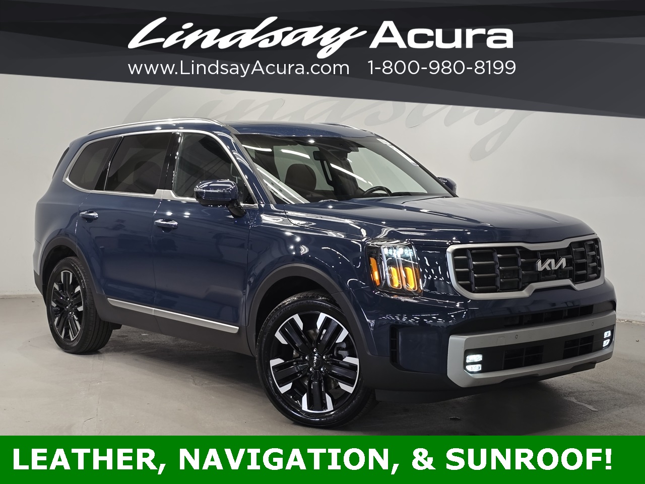 AWD Midnight Lake Blue 2024 Kia Telluride SX-Prestige 8-Speed Automatic 3.8L V6 DOHC **ANDROID AUTO**, **APPLE CARPLAY**, **BLUETOOTH**, **BACKUP CAMERA**, **REMOTE START**, **ADAPTIVE CRUISE CONTROL**, **LEATHER SEATS**, **NAVIGATION SYSTEM**, **POWER PACKAGE**, **ONE OWNER**, **CLEAN AUTO CHECK**, **THIRD ROW SEATING**, **POWER SUNROOF**, **HEATED SEATS**, **POWER TAILGATE**, Mahogany Interior Color Package.