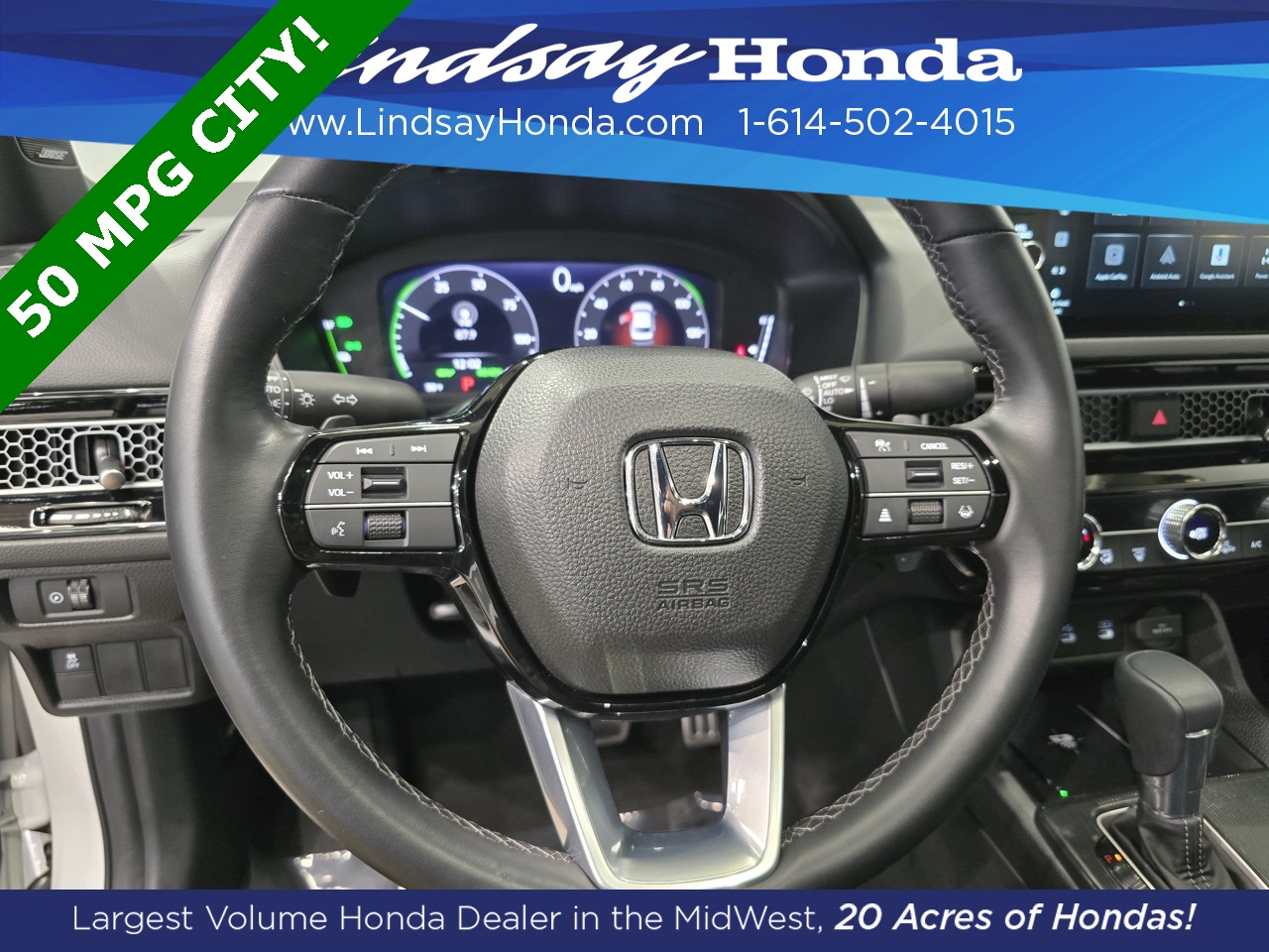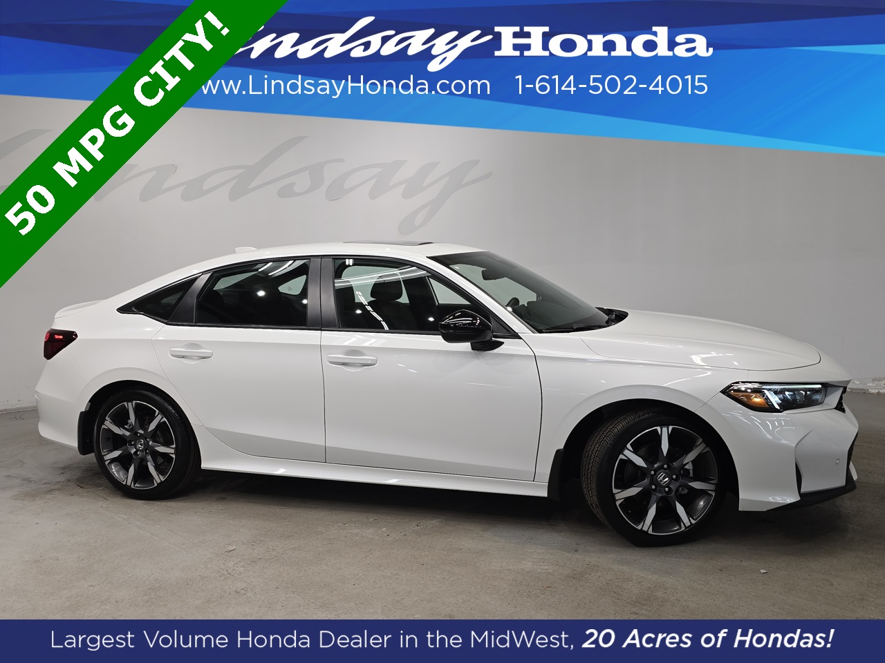 Platinum White Pearl 2025 Honda Civic Hybrid Sport FWD eCVT 2.0L 16V DOHC **BLUETOOTH**, **APPLE CARPLAY**, **ANDROID AUTO**, **ADAPTIVE CRUISE CONTROL**, **POWER PACKAGE**, **REMOTE START**, **BACKUP CAMERA**, **HEATED SEATS**, **CLEAN AUTO CHECK**, **ONE OWNER**, **POWER SUNROOF**.