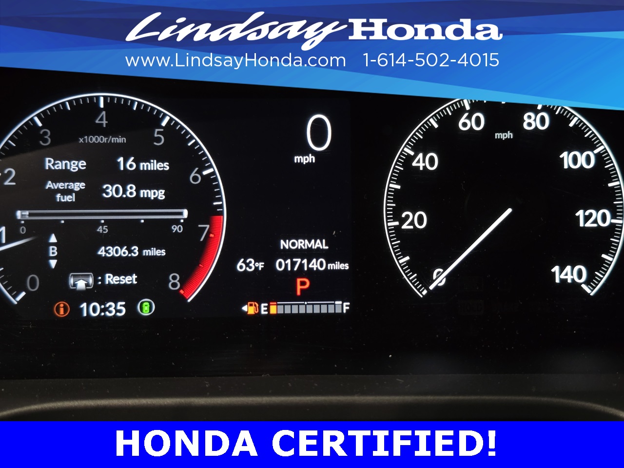 Certification Program Details: HondaTrue Certified Details: * 182 Point Inspection * Powertrain Coverage: 7 Years(From the original in-service date)/100,000 miles (whichever occurs first). * Non-Powertrain Coverage: Additional 2 years beginning at the expiration of the New Vehicle Limited Warranty, or from the date of sale of the vehicle if the New Vehicle Limited Warranty has expired at the time of sale, or up to 100,000 total odometer miles, whichever comes first. *Up to two complimentary oil changes within the first year of ownership. * Vehicle History Report * Warranty Deductible: $0 * Roadside Assistance * Transferable Warranty *SiriusXM 90-Day Trial *Honda Care Motor Club Partner for 1 year/12,000 miles Why buy from Lindsay?