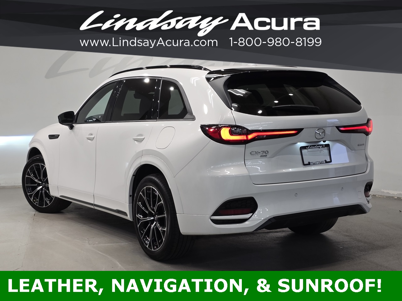 AWD Rhodium White Premium 2025 Mazda CX-70 3.3 Turbo S Premium 8-Speed Automatic I6 Turbo **ANDROID AUTO**, **APPLE CARPLAY**, **BLUETOOTH**, **BACKUP CAMERA**, **REMOTE START**, **ADAPTIVE CRUISE CONTROL**, **LEATHER SEATS**, **NAVIGATION SYSTEM**, **POWER PACKAGE**, **ONE OWNER**, **CLEAN AUTO CHECK**, **POWER SUNROOF**, **HEATED SEATS**, **POWER TAILGATE**, Navigation system: MAZDA CONNECT.